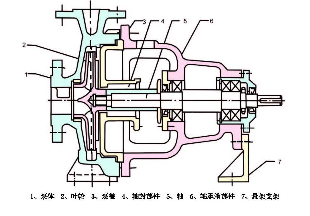 可供水冷式或風(fēng)冷式軸承箱,或水冷軸封箱,中心支撐泵體。